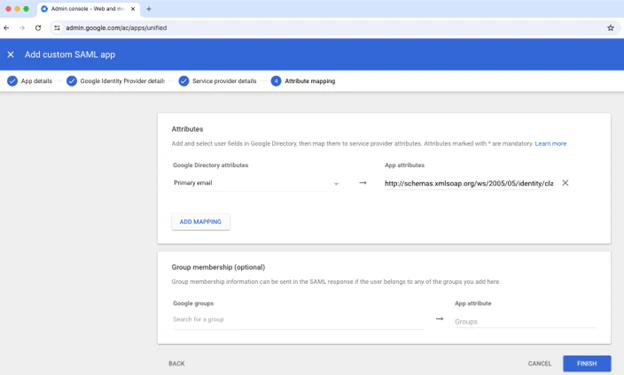 1. On the next screen, it is required to send the email attribute to BloodHound. BloodHound will accept either of the following values as the “App Attributes”: